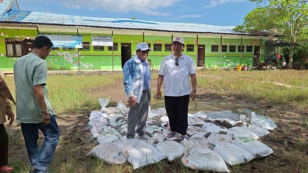 Untuk sementara, pihaknya menangani kondisi halaman sekolah yang berlumpur dengan cara menimbun tanah atau pasir menggunakan karung. Ibnu Sina menambahkan bahwa peninggian halaman sekolah telah diprogramkan dalam anggaran perubahan tahun ini dan diharapkan dapat segera diperbaiki.