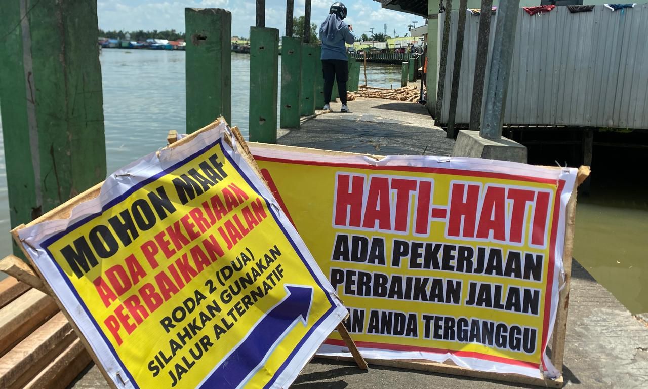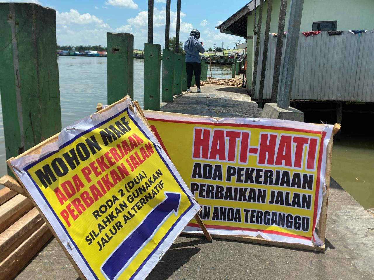Pada Kamis (12/9/2024), terlihat bahwa kayu galam telah dipasang di bagian titian yang rusak. Proses perbaikan, yang sudah berlangsung selama tiga hari, baru mencapai tahap pemasangan steling di bagian bawah titian.