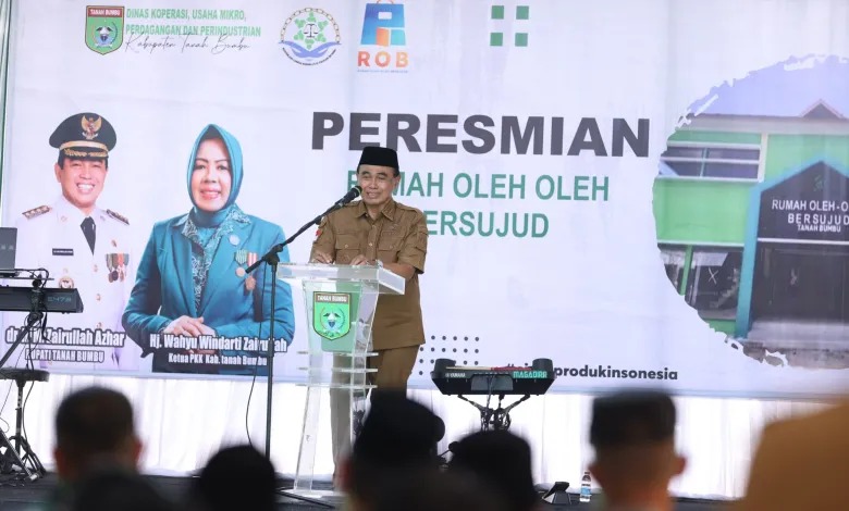 HayKalsel, Tanah Bumbu – Bupati Tanah Bumbu, Zairullah Azhar, secara resmi meresmikan Rumah Oleh-oleh Bersujud Khas Tanah Bumbu pada Senin, (11/11/2024). Acara peresmian dimulai dengan pengguntingan pita yang dilakukan oleh Ketua Dekranasda Tanbu, Hj Wahyu Windarti Zairullah, menandai berdirinya pusat oleh-oleh yang menjadi destinasi favorit bagi wisatawan di daerah tersebut. Setelah itu, Bupati bersama rombongan meninjau lokasi dan membeli produk-produk UMKM yang dipamerkan di rumah oleh-oleh tersebut.
