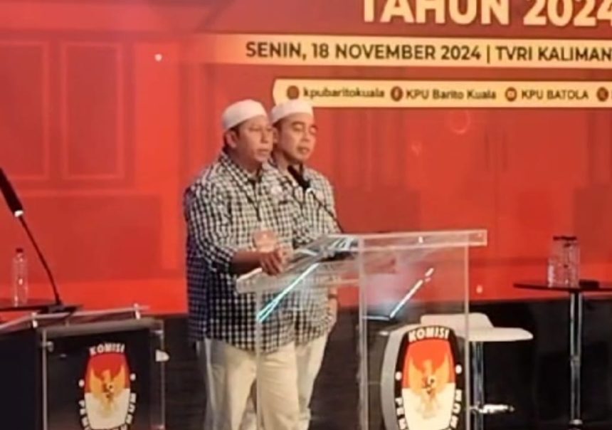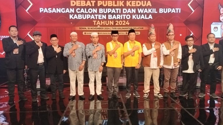 HayKalsel, Batola – Debat terakhir Pilkada Bupati dan Wakil Bupati Barito Kuala (Batola) periode 2024-2029 berlangsung kondusif di TVRI Kalsel, Senin malam (18/11). Tiga pasangan calon (paslon) memaparkan visi, misi, dan program kerja serta menjawab pertanyaan panelis di depan publik, dalam acara yang digelar oleh Komisi Pemilihan Umum Batola dengan tema “Sinergitas Pembangunan Batola dan Pemerintah Pusat untuk NKRI.”