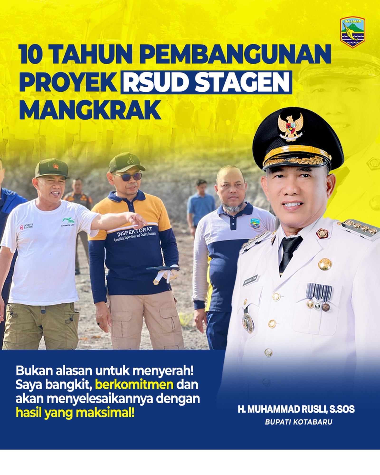 “RSUD Stagen ini bukan sekadar proyek fisik, melainkan bentuk komitmen kami untuk memastikan masyarakat Kotabaru memiliki akses layanan kesehatan yang lebih baik dan memadai,” tegas Bupati Rusli. “Bukan alasan untuk menyerah, saya bangkit, berkomitmen, dan akan menyelesaikannya dengan hasil yang maksimal.”