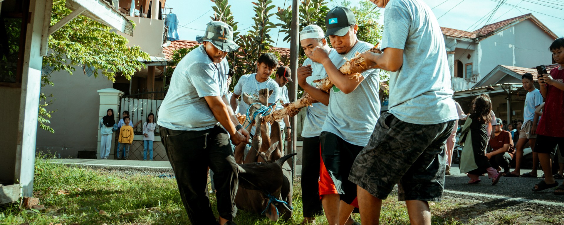 “Himung banar lihat anak-anak sekarang udah ikut turun tangan. Dulu mereka cuma nonton dari pinggir lapangan, sekarang udah ikut gotong sapi,” ujar Nuri Syuhud Haridi, warga RT 33, sambil senyum bangga.