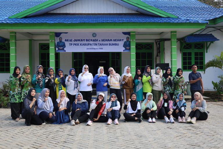 Tanah Bumbu – Ketua TP PKK Tanah Bumbu, Andi Irmayani Rudi Latif, memimpin langsung kegiatan Aksi Jumat Bersih dan Senam Sehat di halaman Sekretariat TP PKK Tanbu, Jumat (1/8/2025).