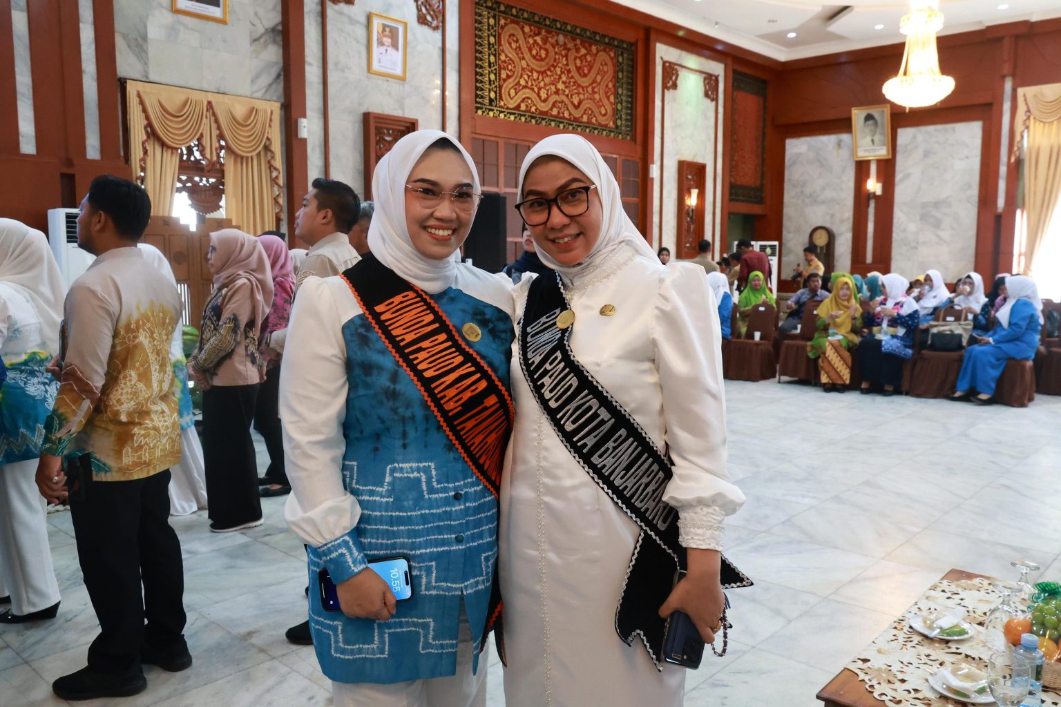 Rakor juga dirangkai dengan pengukuhan Bunda PAUD Kota Banjarbaru, Erna Lisa Halaby, oleh Bunda PAUD Provinsi Kalimantan Selatan, Hj. Fathul Jannah Muhidin. Andi Irmayani menyampaikan apresiasinya atas pengukuhan tersebut.