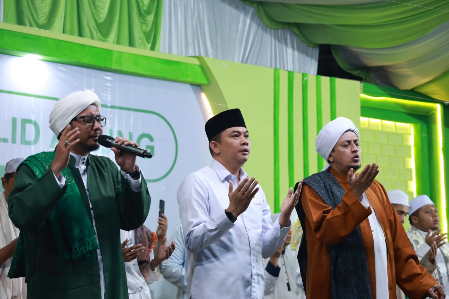 “Alhamdulillah, kita kedatangan tamu istimewa, seorang ulama yang penuh hikmah. Kehadiran beliau tentu memberi semangat baru sekaligus meneguhkan kecintaan kita kepada Rasulullah SAW,” ungkap Bupati.