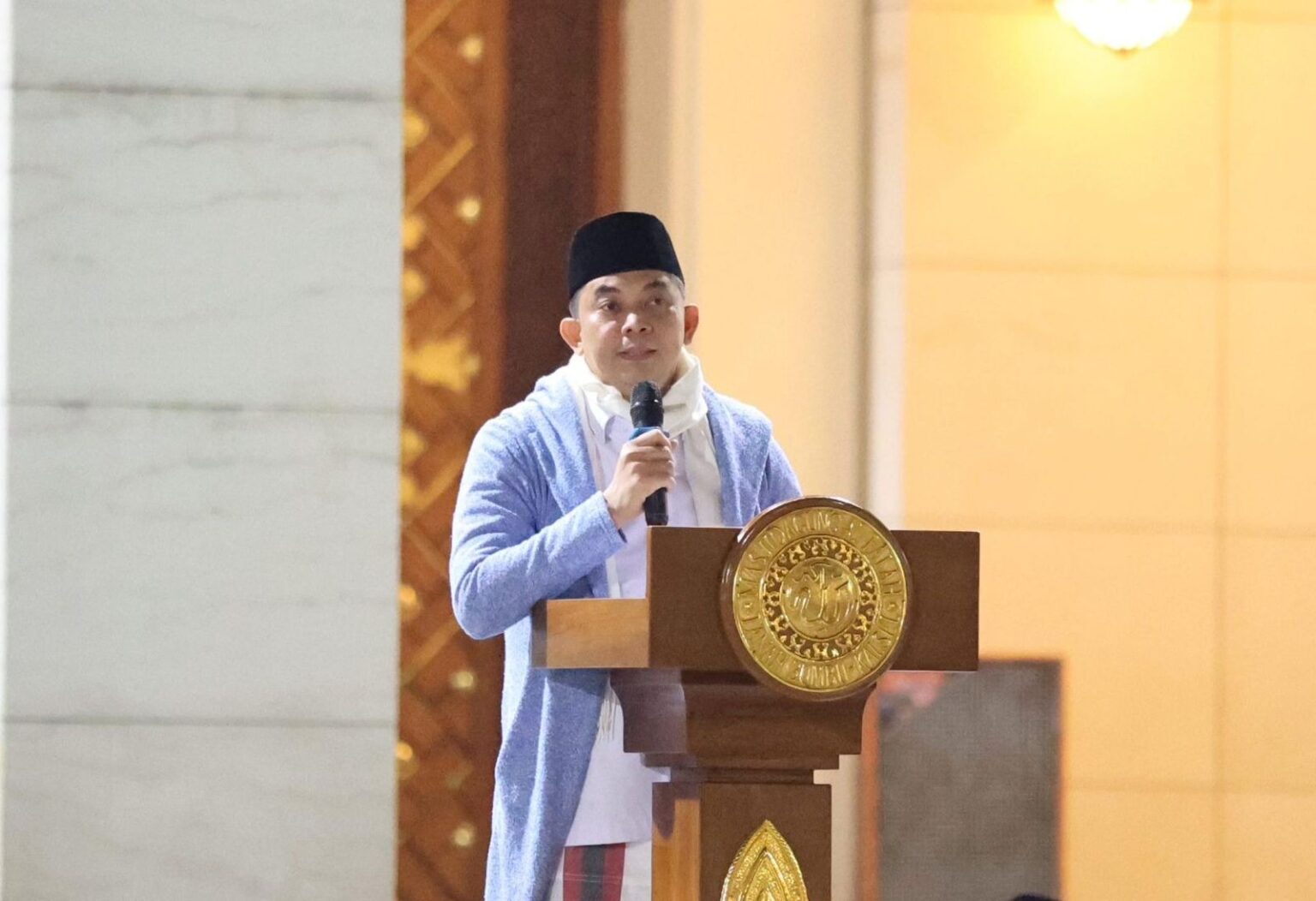 Bupati Tanah Bumbu, Andi Rudi Latif, dalam sambutannya tampak tak kuasa menahan haru saat menyebut nama Nabi Muhammad SAW. Dengan suara bergetar dan mata berkaca-kaca, ia menyampaikan rasa syukur atas kemuliaan yang diwariskan Rasulullah kepada umatnya.