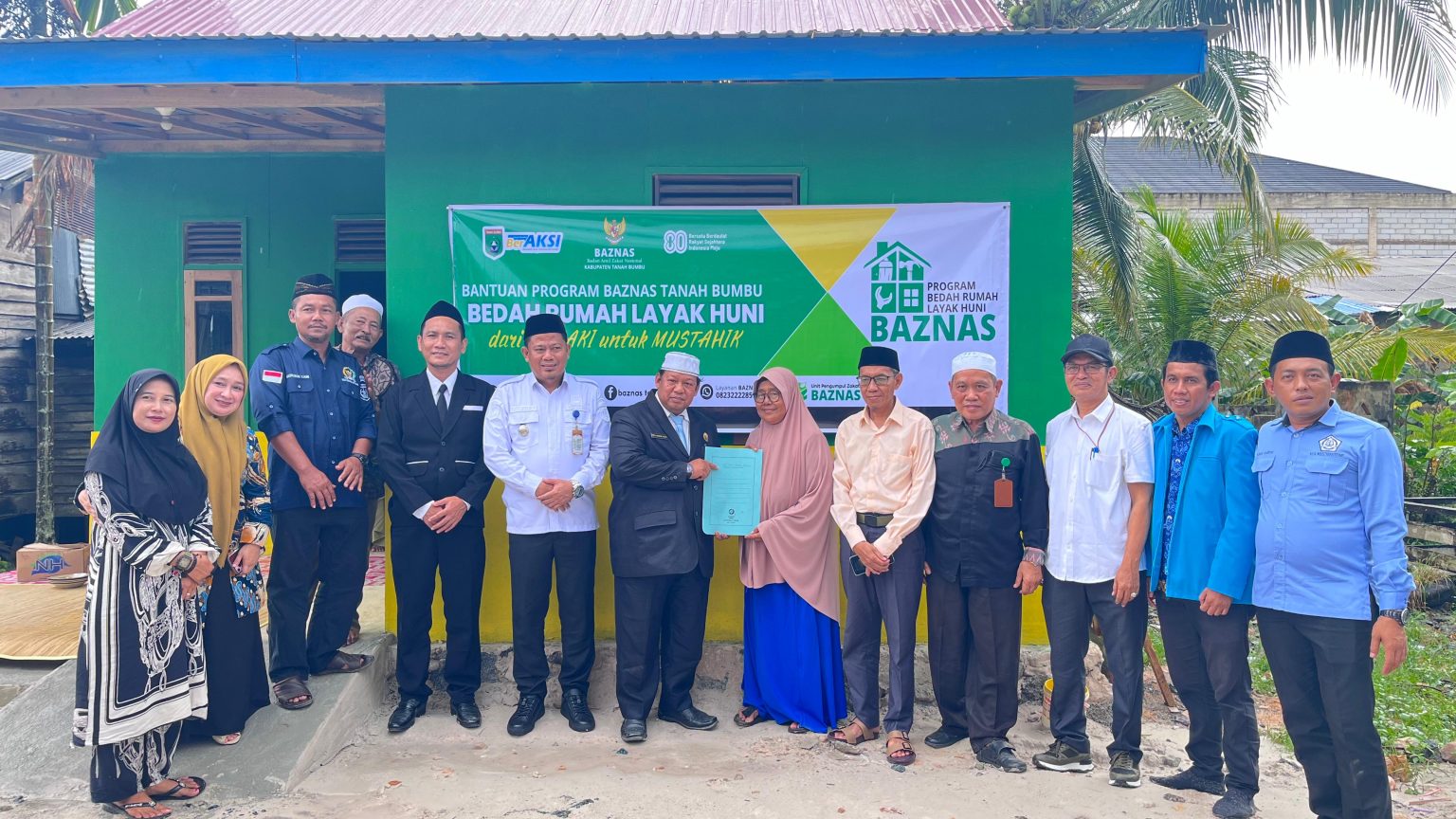 Haykalsel, TANAH BUMBU – Badan Amil Zakat Nasional (BAZNAS) Kabupaten Tanah Bumbu kembali merealisasikan program bedah rumah layak huni tahun anggaran 2025. Bantuan tersebut diserahkan kepada mustahik atas nama Ibu Waginem, warga Desa Gunung Antasari, Kecamatan Simpang Empat, Rabu (1/10/2025).