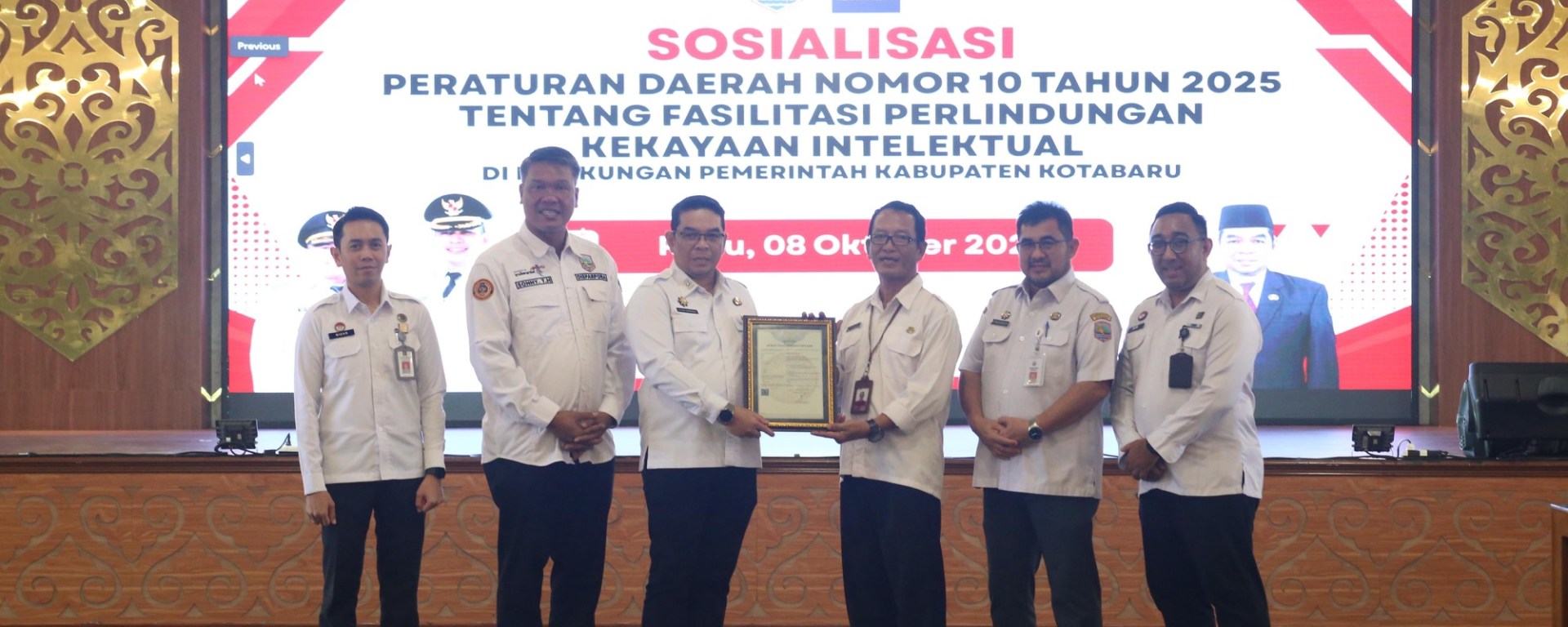 Kotabaru – Pemerintah Kabupaten (Pemkab) Kotabaru melalui Bagian Hukum Sekretariat Daerah menggelar Sosialisasi Peraturan Daerah (Perda) Nomor 10 Tahun 2025 tentang Fasilitasi Perlindungan Kekayaan Intelektual, Rabu (8/10/2025), di Aula Bamega Lantai 2, Sekretariat Daerah Kabupaten Kotabaru, Sebelimbingan.