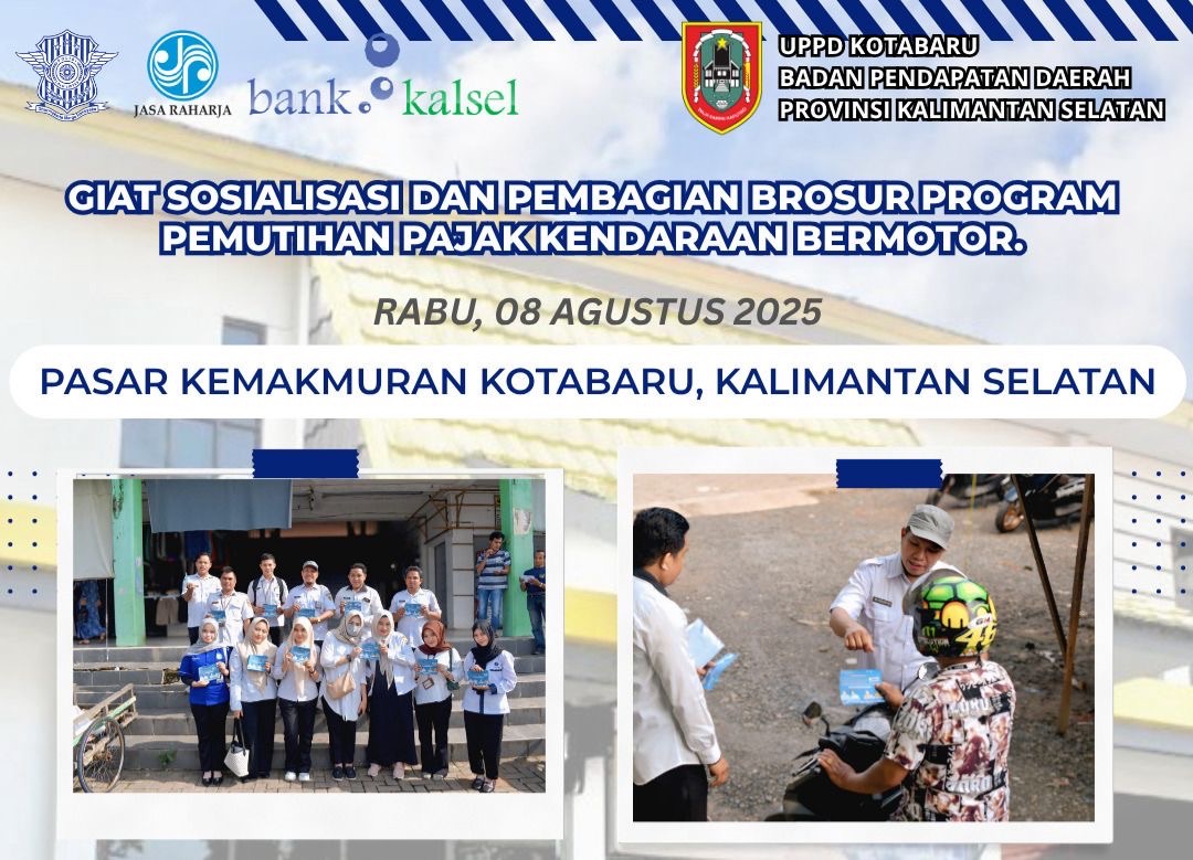 Ia juga menyampaikan, dalam rangka mendukung program tersebut, UPPD Samsat Kotabaru juga melakukan sosialisasi kepada masyarakat, dengan petugas membagikan brosur-brosur di Mini Market, Pasar Kemakmuran dan Kantor-Kantor Dinas, serta memberikan penjelasan terkait tata cara pemanfaatan program pemutihan, menjawab berbagai pertanyaan dari masyarakat seputar pajak kendaraan.