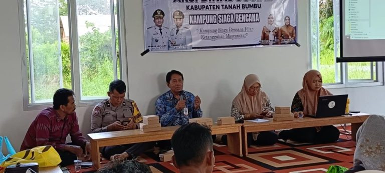 Tanah Bumbu – Pemerintah Kabupaten Tanah Bumbu melalui Dinas Sosial menggelar Sosialisasi Kampung Siaga Bencana (KSB) di Desa Maju Bersama, Kecamatan Batulicin, Kamis (6/11/2025).